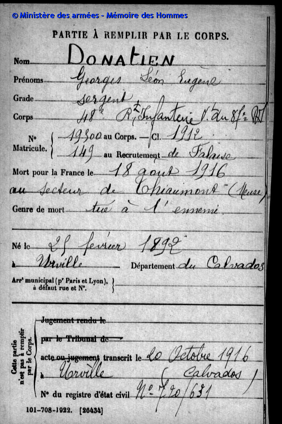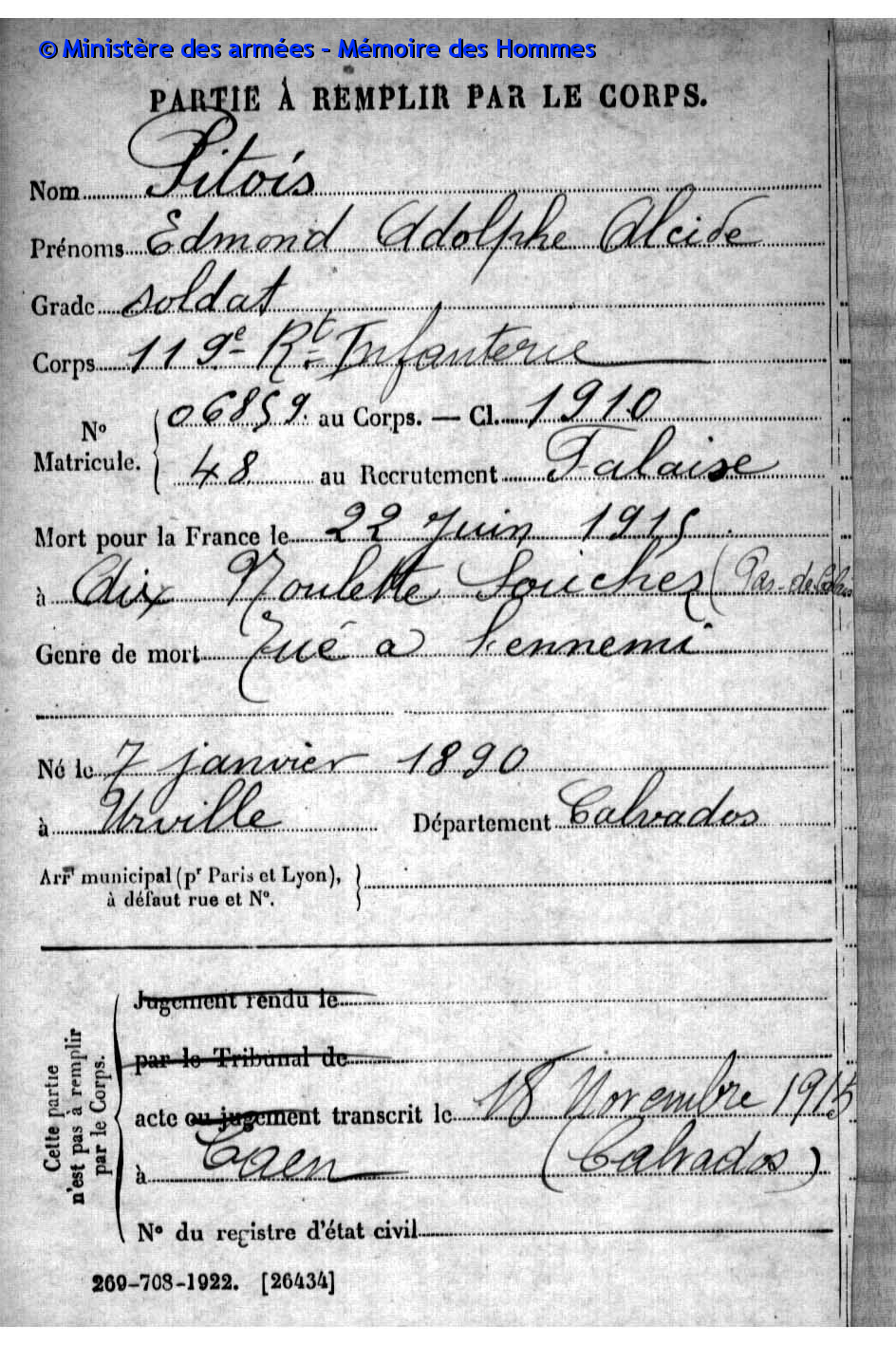 A cette occasion, les élèves de CM1-CM2 de l’école du Roselin avaient effectués des recherches sur les habitants d’Urville morts pour la France lors du conflit de 1914-1918. Le document présentant leur travail de mémoire est consultable en mairie et nous vous présentons ci-dessous les fiches de ces poilus.